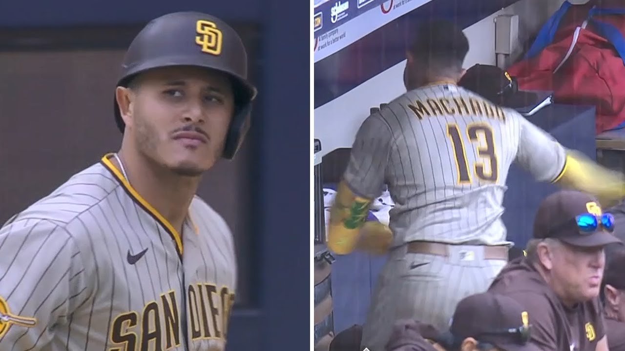 Watch as San Diego’s Manny Machado pops out and heads into the dugout to take his frustrations out on a cooler. ✔️ Subscribe to ESPN+ http://espnplus.com/youtube ✔️ Get the ESPN App: http://www.espn.com/espn/apps/espn ✔️ Subscribe to ESPN on YouTube: http://es.pn/SUBSCRIBEtoYOUTUBE ✔️ Subscribe to NBA on ESPN on YouTube: http://bit.ly/SUBSCRIBEtoNBAonESPN ✔️ Watch ESPN on YouTube TV: http://es.pn/YouTubeTV
