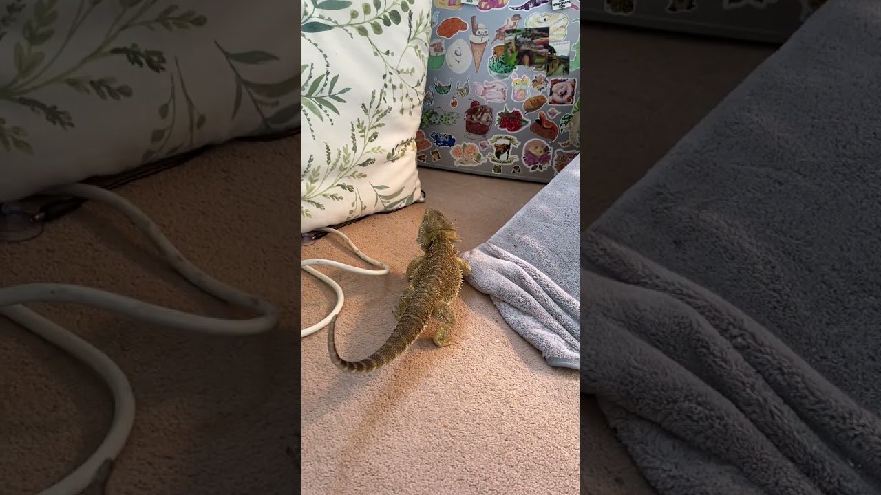 Bearded Dragon Tries to Climb Up Pillow