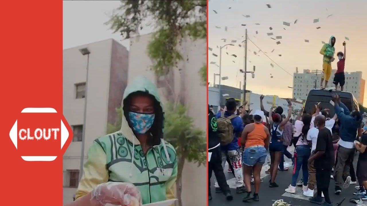 Blueface Returns To Skid Row LA And Helps Feed The Homeless + Throws $50K Cash In The Streets!